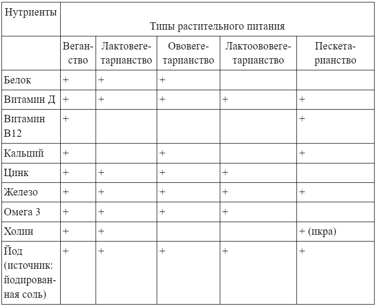 При разных видах растительного питания реальны риски недостатка определенных веществ и элементов.