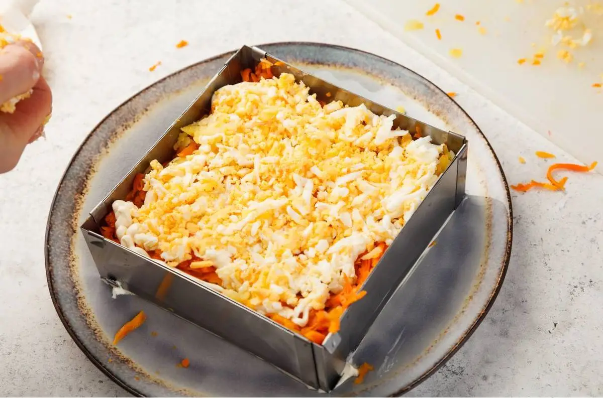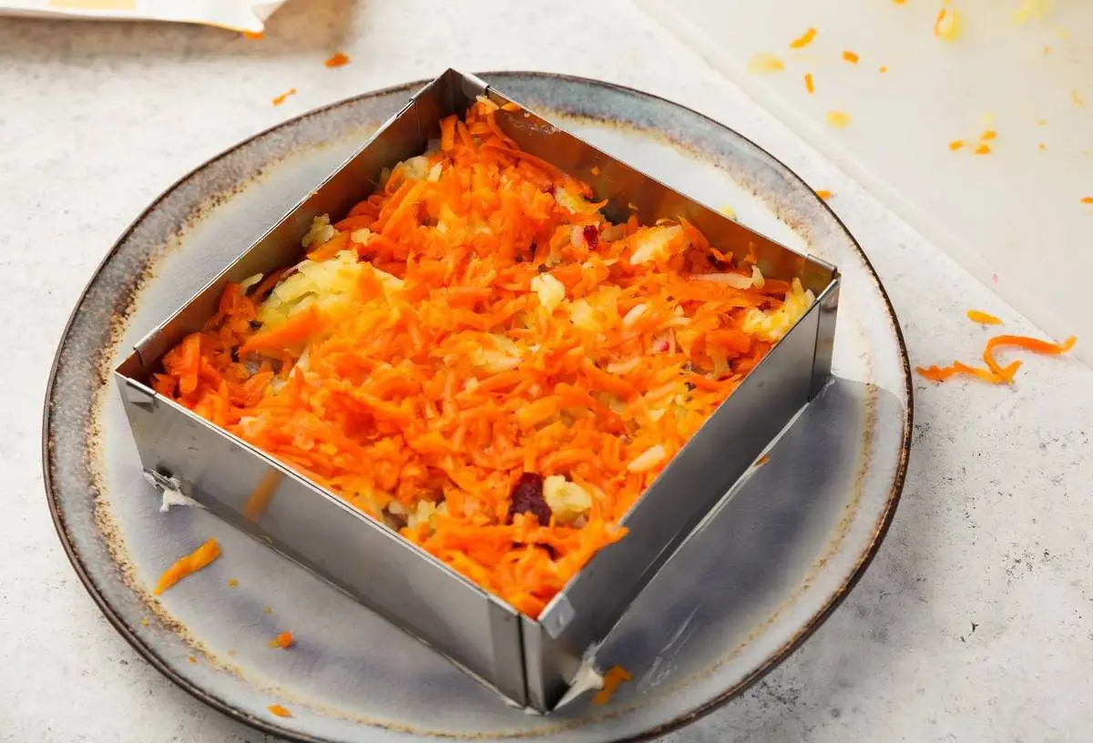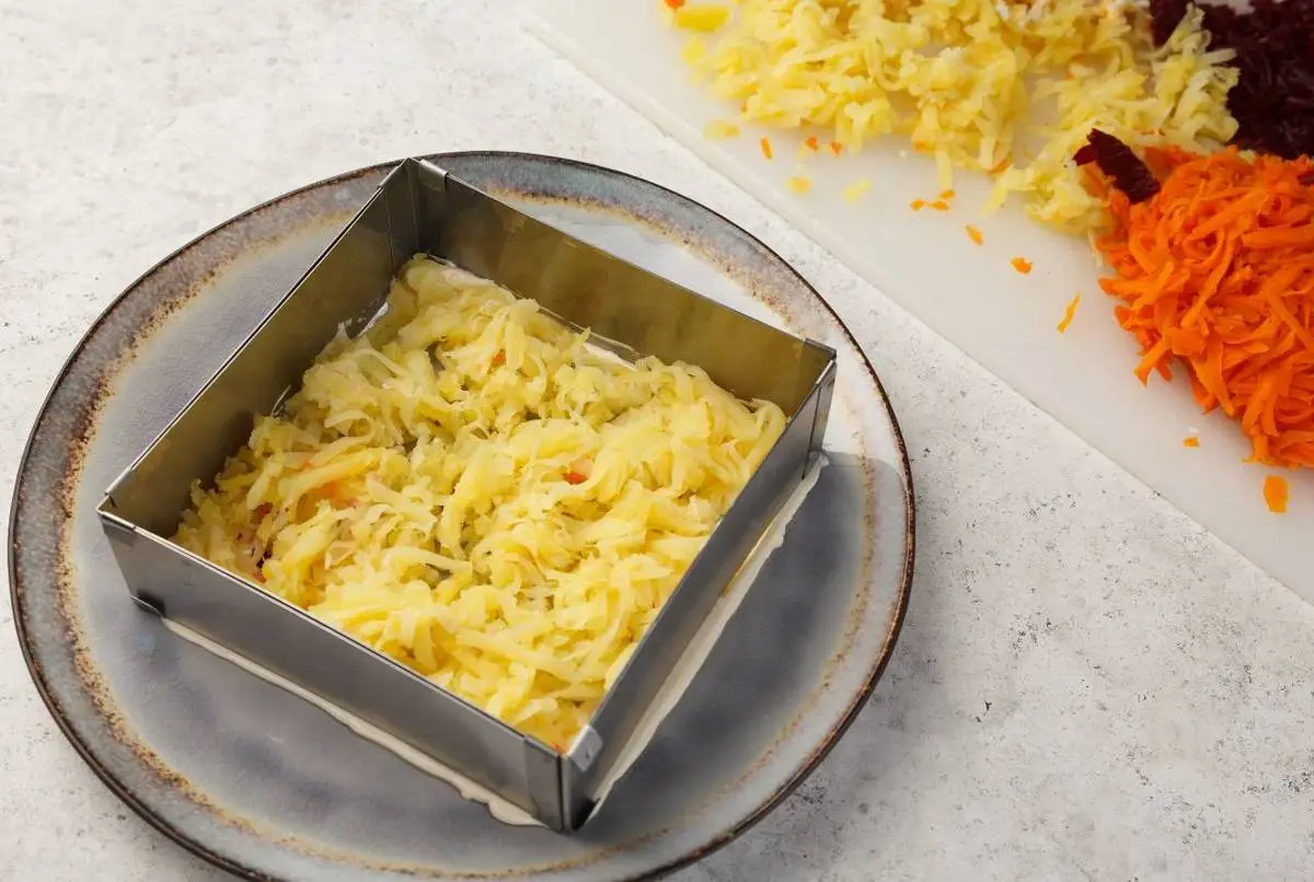 Затем морковь, потом селёдка, снова картофель и морковь.