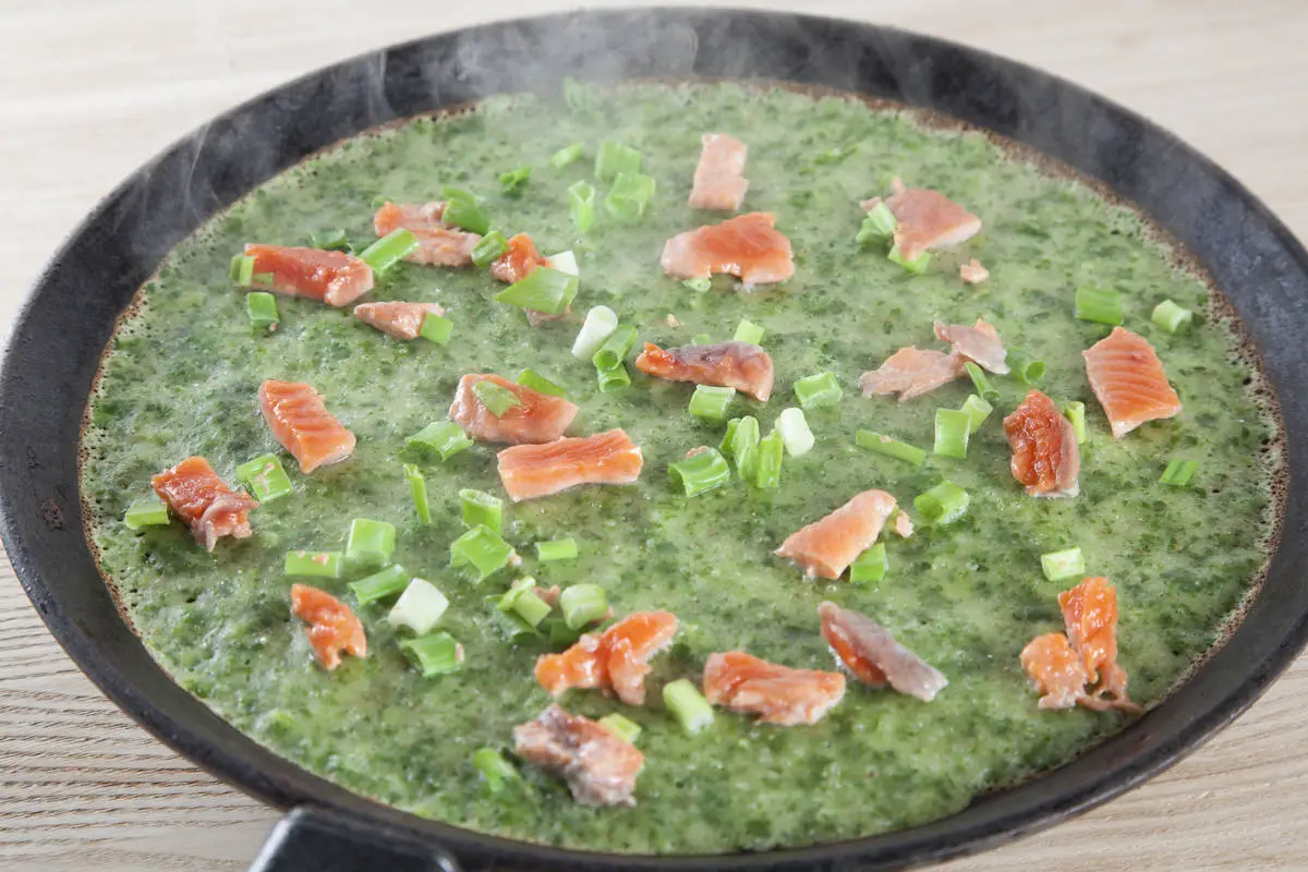 Зеленые блины с припеком